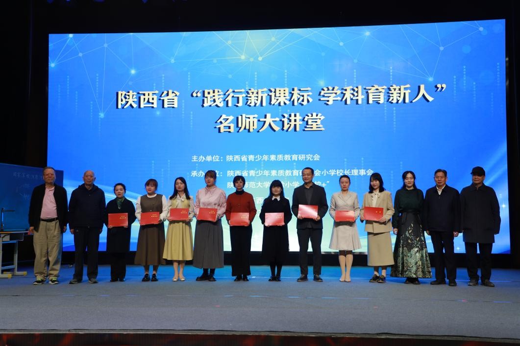 在3月17日的首場活動閉幕式上,國家督學,省委教育工委原書記、省教育廳原廳長楊希文,陜西省教育廳原副廳長、巡視員、陜西省青少年素質教育研究會顧問屈應超,陜西省青少年素質教育研究會專職顧問、西安市教育局原正局級巡視員張創榮,陜西省青少年素質教育研究會常務會長潘燏,咸陽市教研室副主任、陜西省青少年素質教育研究會專家名師理事會小學教育學術委員會主任曹有凡,陜西省青少年素質教育研究會小學校長理事會副理事長、渭南小學校長郗莉,陜西師范大學實驗小學“名校+”副校長李軍一同為優秀授課教師以及點評、指導專家頒獎。