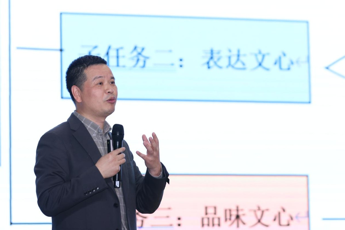 精彩課例展示后,孫世梅老師以《“文學閱讀與創意表達”任務群內涵解析及施教建議》為主題作微報告。她從內涵解讀和施教建議兩方面進行闡述,認為在開展語文實踐的過程中,教師應注重通過整體感知、聯想、想象,“讓學生獲得豐富的審美經驗,具備初步的感受美、發現美和運用語言文字表現美、創造美的能力。”引導學生多維度感受文學語言和形象的獨特魅力,獲得個性化的審美體驗。