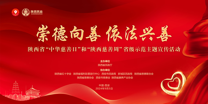 為深入學習貫徹習近平總書記關于慈善工作的重要指示批示精神和黨的二十屆三中全會精神,更好地貫徹落實新修改的慈善法,陜西省民政廳擬于9月5日上午,在西安市一帶一路銀發經濟產業園戶外廣場(新城區環城北路44號西安站北廣場東配樓廣場),組織開展以“崇德向善 依法興善”為主題的省級示范主題宣傳活動。