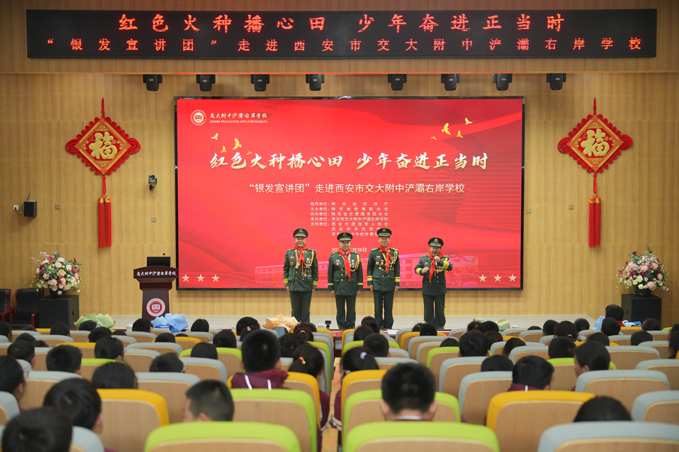 銀發(fā)宣講團(tuán)”進(jìn)校園活動(dòng)為交大附中浐灞右岸學(xué)校德育實(shí)踐注入精神力量,讓紅色歷史鮮活落地,紅色基因在少年心中扎根生長(zhǎng)。愿學(xué)子以感悟?yàn)閵^進(jìn)動(dòng)力,書寫青春華章。