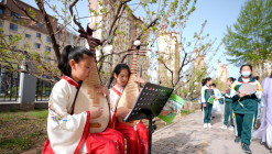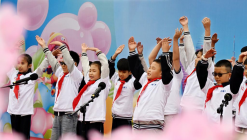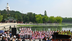 ??5月29日,少先隊員們在北海公園進行合唱表演。??當日,第三屆“讓我們蕩起雙槳”首都少年兒童慶祝“六一”國際兒童節主題活動在北京北海公園舉辦。來自北京市10支少年合唱團的少