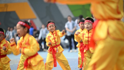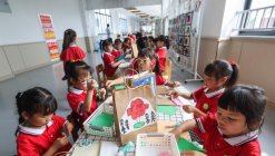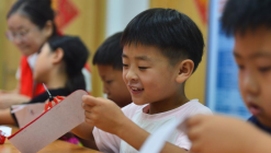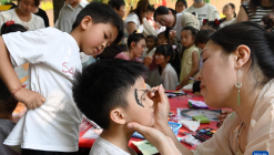 ??5月28日,在河南省沁陽市白莊村幼兒園,老師為小朋友畫面部彩繪。??端午節和兒童節臨近,各地開展豐富多彩的活動,讓孩子們感受傳統節日魅力。??新華社發(楊帆攝)